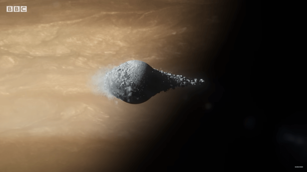 A once-coherent icy moon may have drifted too close to Saturn and crossed the Roche limit, a critical boundary inside which tidal forces exceed a body’s self-gravity. As a result, the moon could have been torn apart into countless fragments, eventually spreading and flattening into rings.