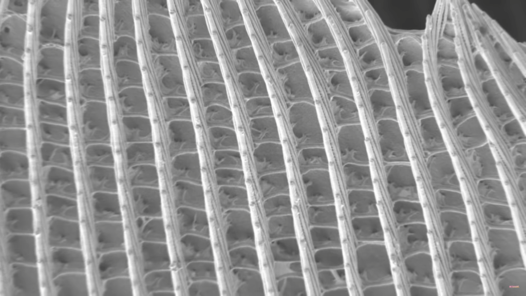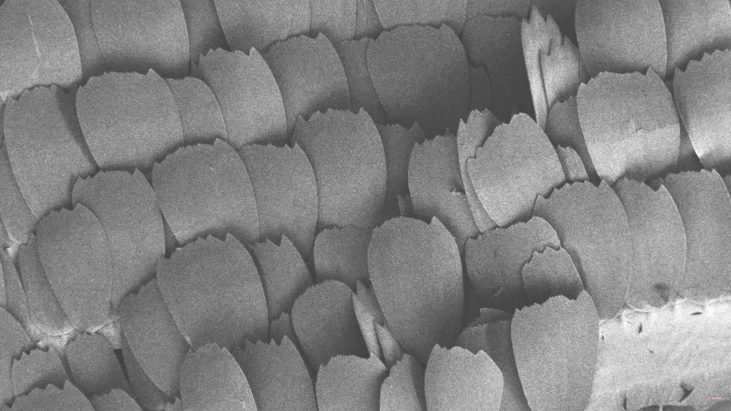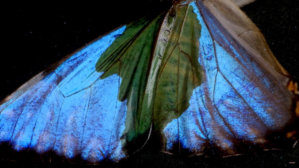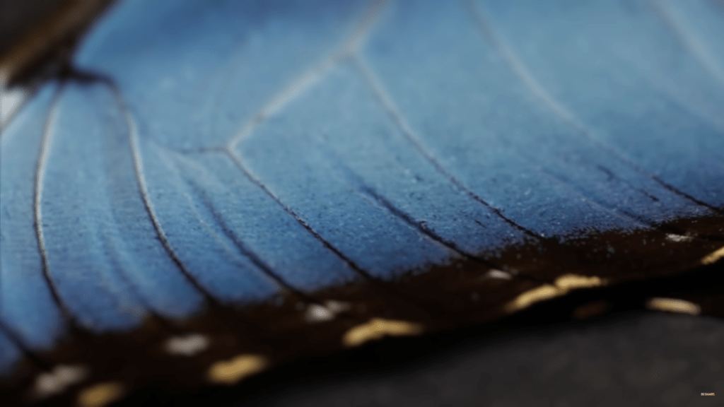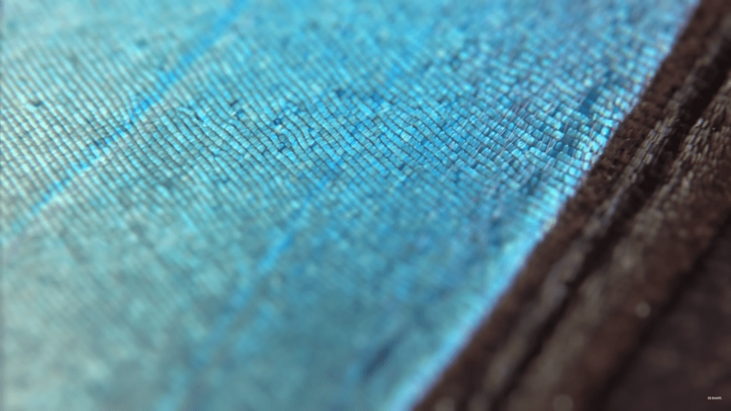 The following are some increasingly zoomed images captured of the Blue Morpho’s wings.