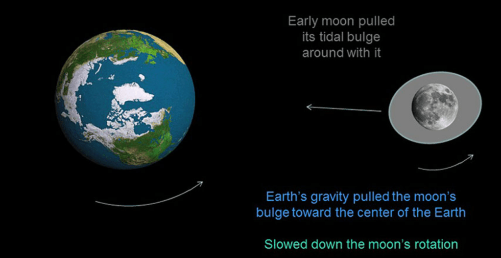 Tidal locking occurs due to the gravitational interactions between the two bodies. Throughout millions of years, these interactions cause energy exchange and heat dissipation processes, until equilibrium is achieved and the body’s rotation stabilizes. Thus, it becomes tidally locked.